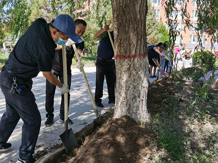 活动中,同志们到经世楼南侧道路出口绿化带,在校园绿化人员的指导下,挖土培垅,铲除杂草,整理绿地环境,为校园添上一抹“亮色”的同时,也将“崇尚劳动、热爱劳动、辛勤劳动、诚实劳动”的劳动精神“种”进每位党员和教职工心中。