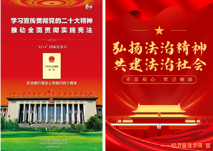 为全面学习宣传贯彻党的二十大精神,深入学习贯彻习近平法治思想,深入学习宣传贯彻宪法,进一步树牢宪法意识、弘扬宪法精神、树立宪法权威,促使广大师生自觉成为宪法的忠实崇尚者、自觉遵守者、坚定捍卫者,12月1日至7日,经济管理学院在全院师生中开展“宪法宣传周”活动。
