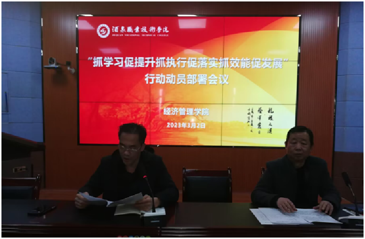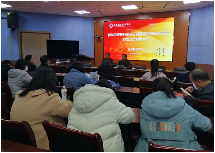 3月2日,经济管理学院在经世楼录播室召开“抓学习促提升、抓执行促落实、抓效能促发展”行动动员部署会议。学院党支部副书记魏旭江主持会议,全体教职工参加了会议。