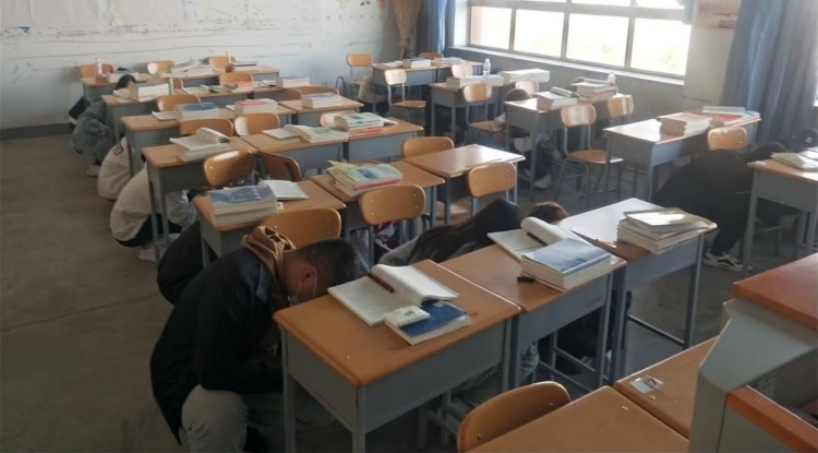 在教学楼地震避震和逃生演练中,同学们在任课老师的统一指挥下开展紧急避险,双手抱头就近躲避到教室课桌下,保护自己的头部安全,预警间歇,任课老师、班主任和学生干部及时有序地组织学生按照安全逃生路线疏散,在整个演练过程中,听从指挥、行动统一、秩序井然,在规定时间内,全体师生安全疏散到安全位置。