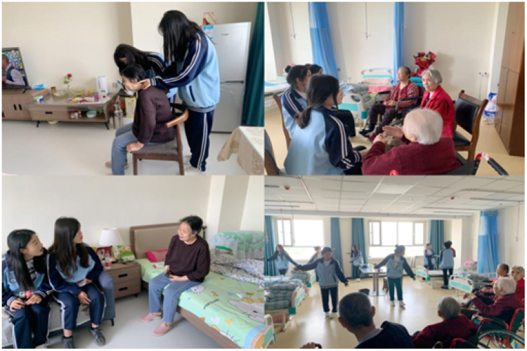 在老年公寓,志愿者为老人们打扫卫生、捶背按摩、陪他们唠家常、和老人们回忆美好往事、表演节目,走近他们的内心,了解他们的故事,倾听他们的心声,老人们倍感温暖,脸上洋溢着幸福的笑容。