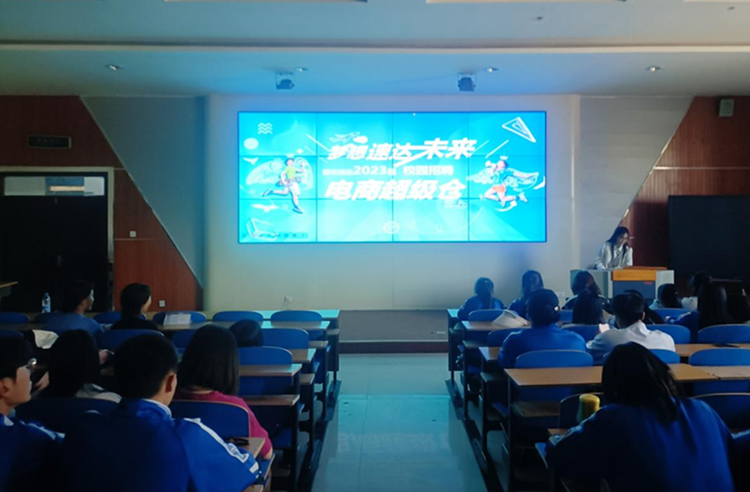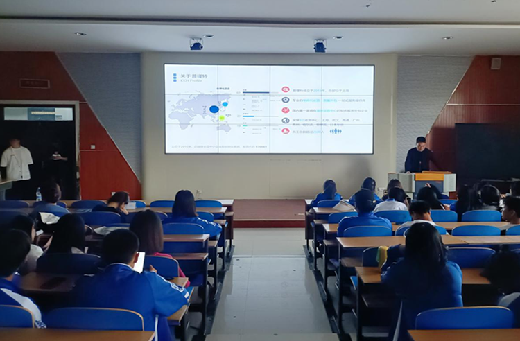 招聘会在行知楼东阶梯教室举行,我院2021级全体同学参加招聘会。招聘企业分别通过播放PPT、宣传片,面对面交流的方式向同学们介绍了企业发展历程、未来愿景、企业文化、人员需求以及薪资待遇等具体情况,让同学们对企业岗位有更加深入的了解。
