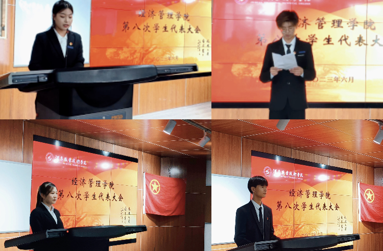 为深入贯彻学习习近平新时代中国特色社会主义思想主题教育,扎实推进青年学生会组织改革发展,团结引领广大青年学子奋进新征程、建功新时代。经济管理学院于2023年6月18日19:00在胡杨大讲堂开展第八次学生代表大会。经济管理学院副院长杜静、学生管理干事裴玲、100位学生代表参加此次会议,会议由经济管理学院团委书记王诗雨主持。