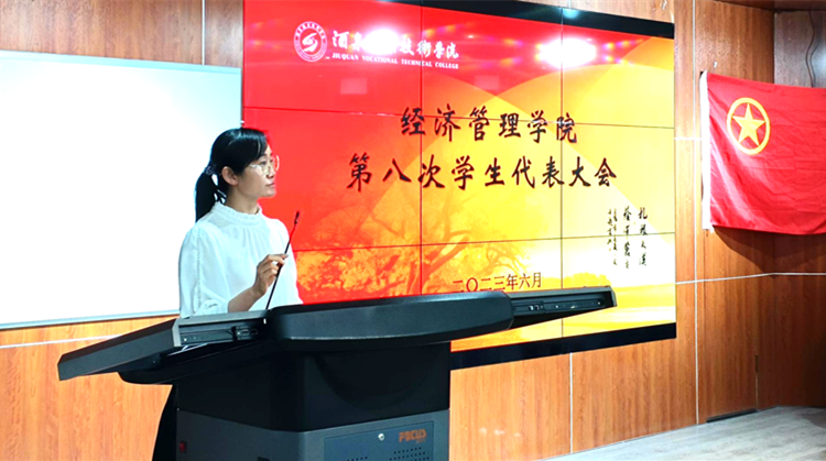 经济管理学院副院长杜静在总结讲话时对此次学生代表大会圆满成功表示祝贺,对上一届学生会工作予以肯定并表示感谢。她指出,学院团委学生会将继续围绕学院中心工作,紧贴青年学生和时代特点,勇于自我革新、关注青年发展、紧跟时代步伐。她对新一届学生会成员提出了三点希望:一是不忘初心,担当使命;二是团学组织要发挥好桥梁纽带作用;三是团学干部要提高自身综合素质,练就过硬本领。她希望所有团学干部有经得起考验的本领,以饱满的热情和主人翁精神,反映广大团员青年心声,担当桥梁纽带,以“三抓三促”行动为总的要求,高质量参与学院发展建设工作。