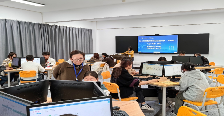 2023年11月19日,经济管理学院在学校智慧财经商贸实训中心三楼举办会计实务(学生组)技能竞赛,2022级、2023级大数据与会计、大数据与财务管理专业76名学生组成的19支团队参加竞赛。