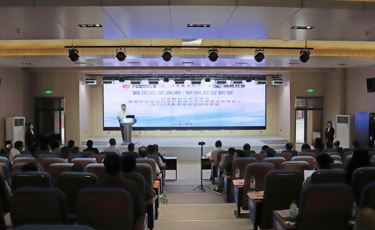 2025年7月18日,全国财税服务行业产教融合共同体年中总结规划会议在酒泉职业技术大学召开。本次会议汇聚了业界精英、专家学者及教育机构代表,共同探讨企业数智化转型的新路径与产教融合的新模式。全国财税服务行业产教融合共同体牵头院校、企业代表100多人参加会议,酒泉职业技术大学党委书记易志军同志、党委副书记、校长许军同志、副校长杨洁同志出席会议。