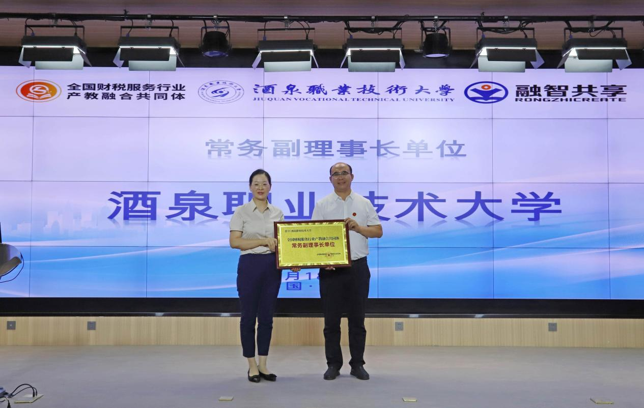 会议期间,校长许军、广州正誉集团董事长鲁银花等为共同体西北区产教融合中心成立揭牌,标志着全国财税服务行业产教融合共同体在西北地区又迈出了坚实的一步。会议还进行了常务副理事长单位和副理事长单位的增补授牌仪式,进一步壮大了共同体的力量。酒泉职业技术大学副校长杨洁同志代表学校与酒泉融智新云企业服务有限公司签署了战略合作协议,为产教融合的深入实践奠定了基础。