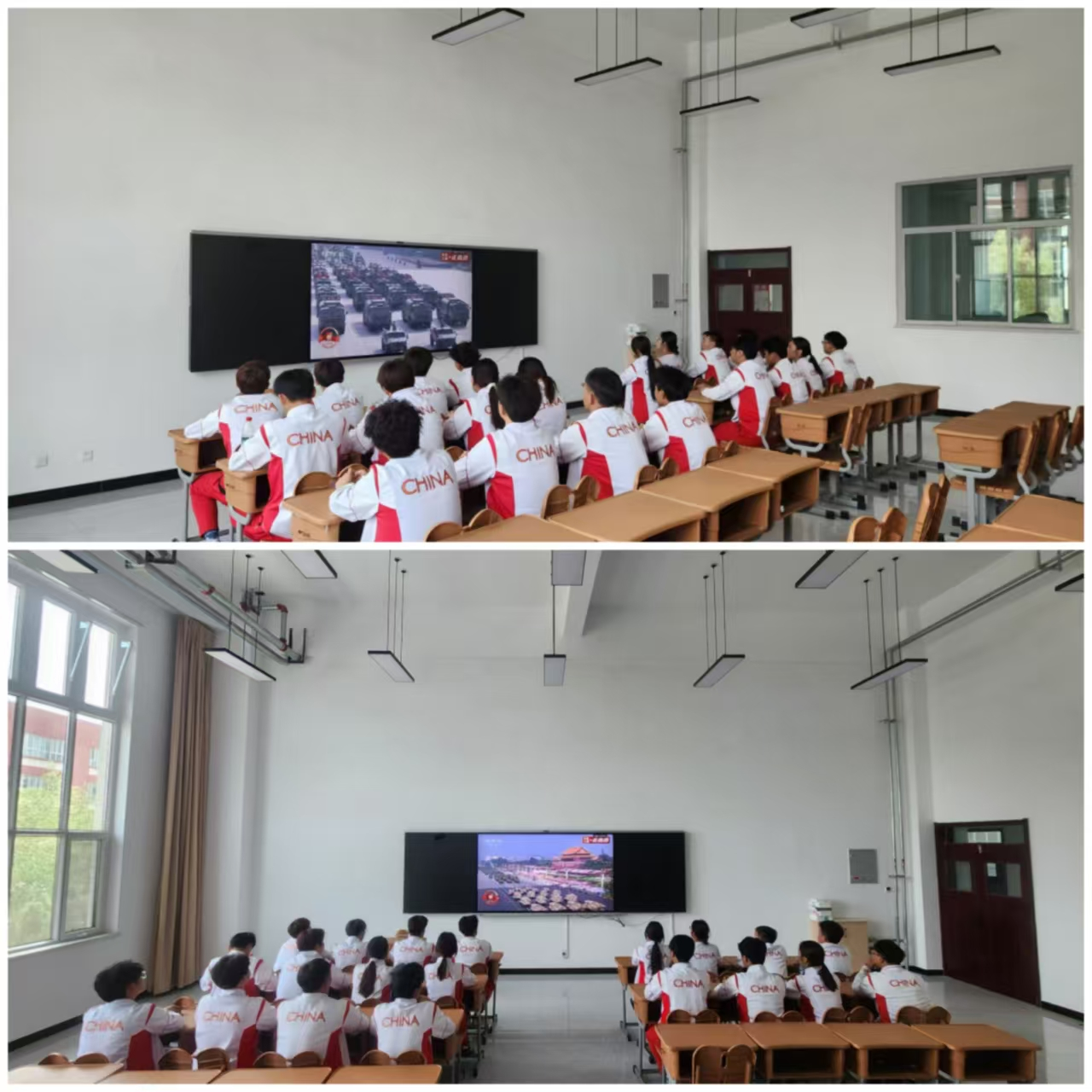 观看过程中,同学们神情专注,情绪高涨。分列式磅礴的气势、战旗方阵呈现的历史厚重感、新型国防力量的集中展示,无不深深触动着每一位在场学生。同学们不仅为人民军队严明的纪律、强大的凝聚力、顽强的精神风貌和祖国的繁荣强盛感到骄傲,更深刻体会到革命先辈血战到底的英雄气概、百折不挠的坚定信念和气壮山河的峥嵘岁月。
