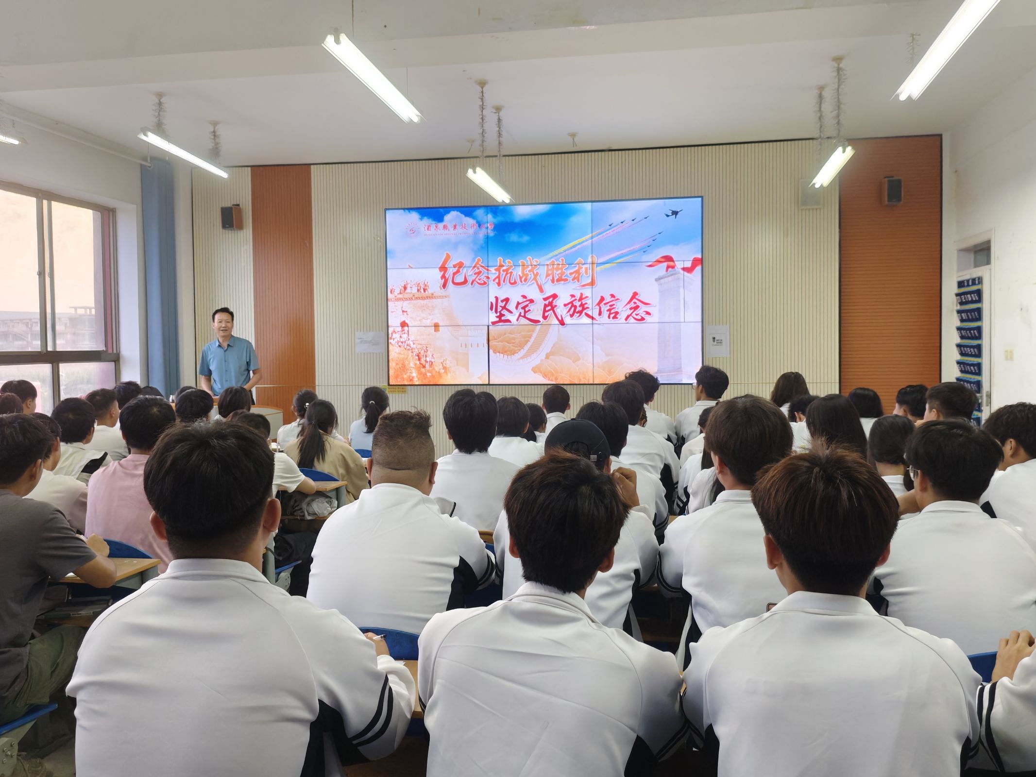 为纪念中国人民抗日战争胜利八十周年,引导学生铭记历史, 9月4日,电子与信息工程学院领导班子以“纪念抗战胜利 坚定民族信念”为主题,为全院学生讲了“形势与政策课”第一课。