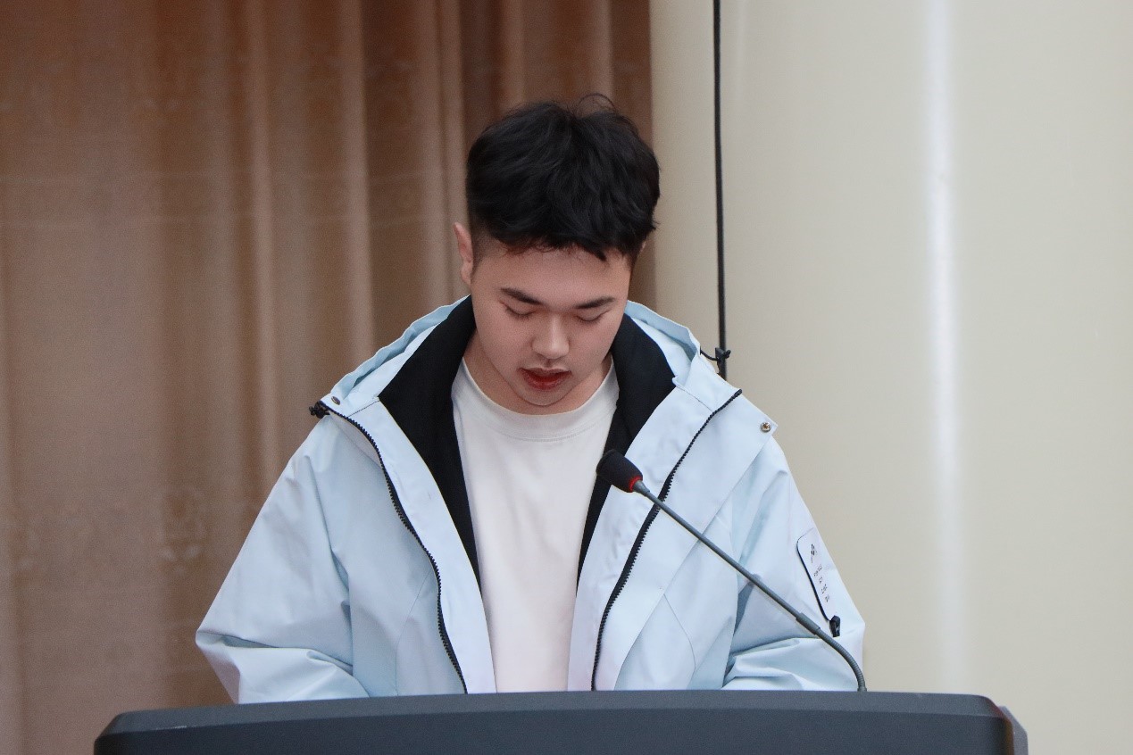 2025级新生代表陈卫同学上台发言,分享了自己初入大学的感受与对未来大学生活的期待。他代表全体新生感谢父母与老师的付出,并表示将珍惜大学时光,努力学习、锻炼能力,不负青春、不负期望。
