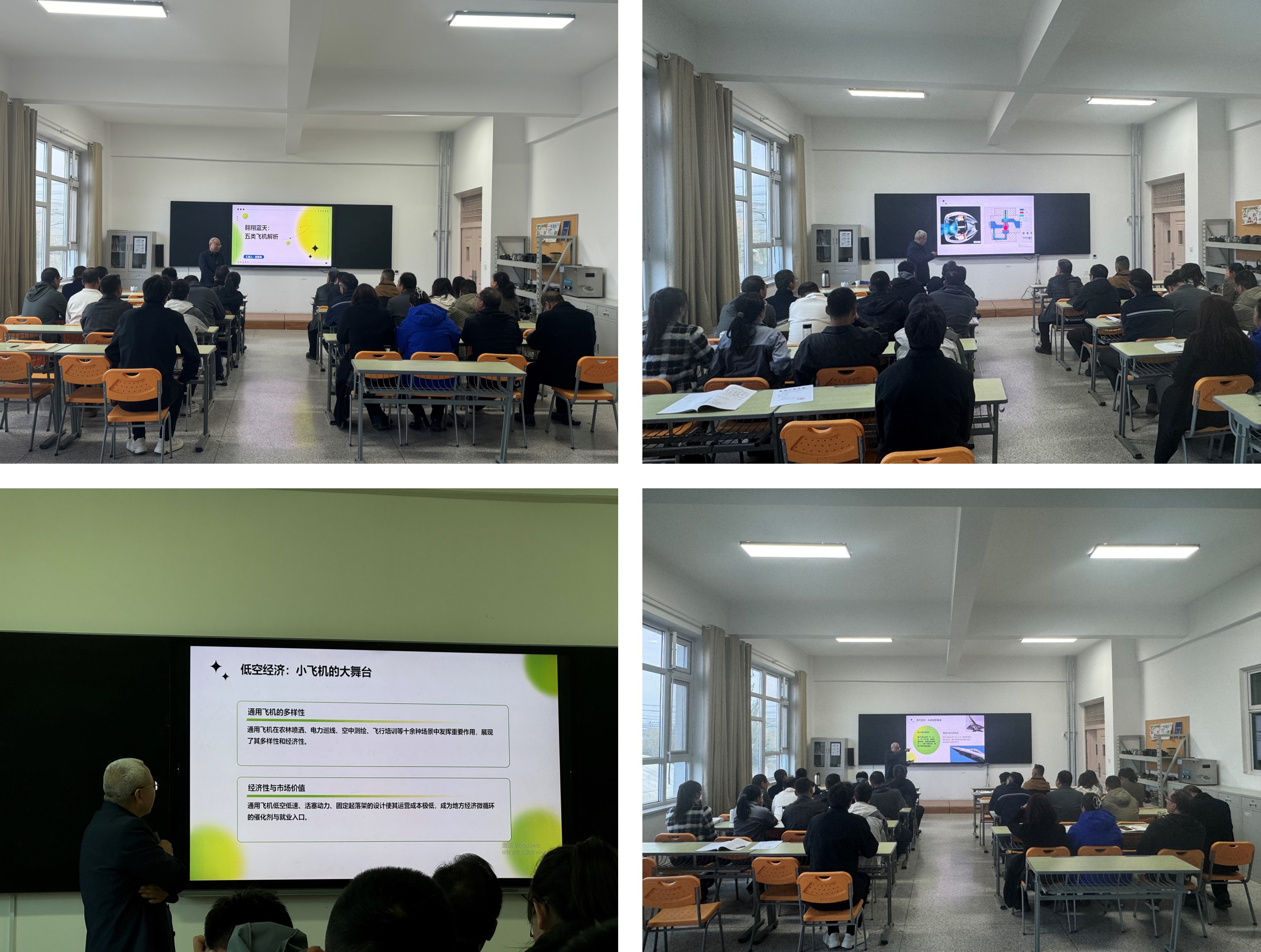 段富海教授围绕“翱翔蓝天,五类飞机解析”与“漫谈飞机机电系统:隐形的力量”两大主题展开讲解。系统剖析了固定翼飞机、直升机、无人机等五类飞行器的核心特点与应用场景,勾勒出低空经济运行的立体图景。同时聚焦于被誉为飞机“神经与血脉”的机电系统,揭示了这一隐形基石是保障飞行安全、提升性能的关键力量。