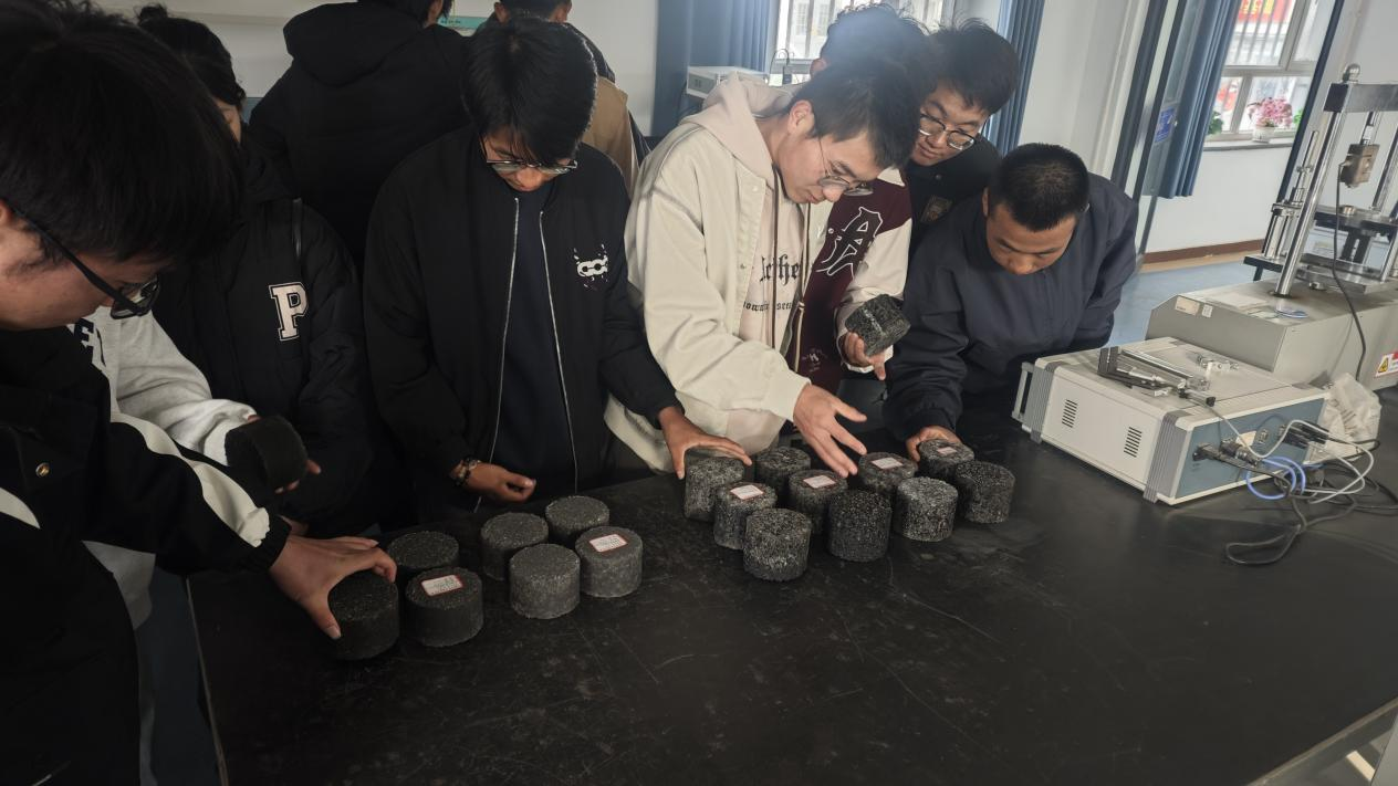 在甘肃公路博物馆,同学们通过室内展区丰富的实物模型、历史文献与数字化互动装置,系统了解了甘肃地区从古丝绸之路交通驿道到现代智慧公路的演进历程,重点学习了道路材料演变、桥梁结构类型与施工工艺发展等专业知识。随后在户外展区,各类施工机械的实体展示生动呈现了筑路设备从机械化到智能化的发展轨迹,使同学们对现代公路施工的技术装备有了直观认识。在酒泉公路事业发展中心试验检测室,精密的路基检测仪器、材料性能测试设备及规范化的操作流程,让同学们深刻体会到工程质量控制在公路建设中的关键作用,进一步理解了“标准引领、数据支撑”的行业质量管理理念。
