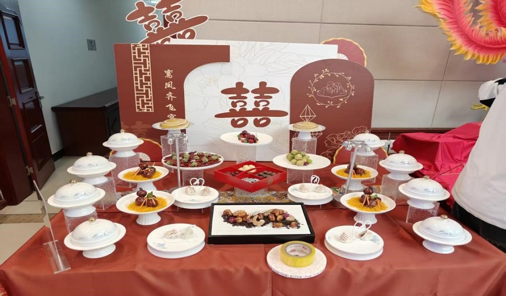 为保障参赛质量,我院自接到赛事通知起,便将备赛工作纳入重点教学实践任务。依托“陇菜烹饪技术科技创新中心”技术平台,学院组建了由专业骨干教师+学生组成的参赛团队,并制定详细备赛方案。在理论方面,围绕酒店管理规范、绿色服务标准等竞赛核心知识点,通过专题学习、真题演练、小组研讨等形式,夯实团队理论基础;在实操方面,针对中式烹调、宴会设计模块,开展“每日实操+即时点评+迭代优化”的强度训练;在理念创新上,紧扣赛事“绿色服务”要求,融入低碳食材选用、定制宴席等现代餐饮理念,确保作品既符合专业标准,又兼具时代价值,评委评价宴席“实现了传统饮食文化与现代餐饮需求的深度融合”。