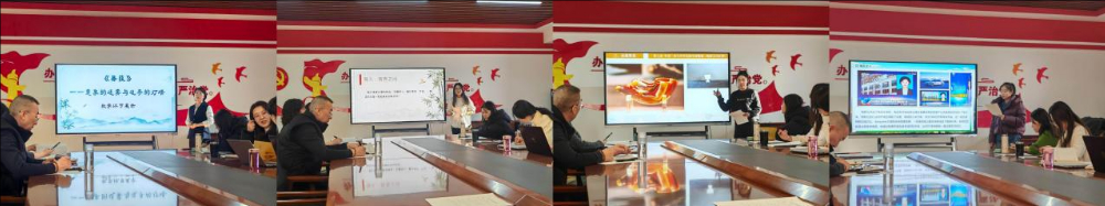 根据学校第一届教学主题月活动安排,对标甘肃省教师教学技能大赛要求,为推进高水平、结构化教师教学创新团队建设,遴选培育优秀教学团队,11月18日,马克思主义学院在学院会议室成功举办第一届教学主题月教师技能比赛初赛。本次比赛特邀管雪梅、屈玉霞、刘全明三位教授组成评审团,由人文素养教研室和思政教研室共同组建三支参赛团队同台竞技。