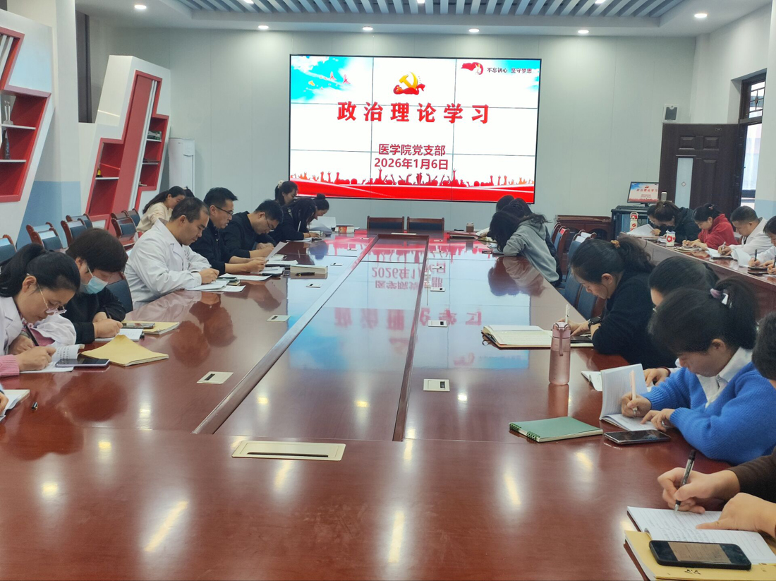 新年伊始,为持续深入学习贯彻党的二十大及二十届四中全会精神,切实提升教职工思想政治素养与理论武装水平,统一思想、凝聚力量,医学院于2026年1月6日组织召开专题政治理论学习会议。会议由医学院党支部书记范玉敏主持,学院全体党员及教职工共同参与。