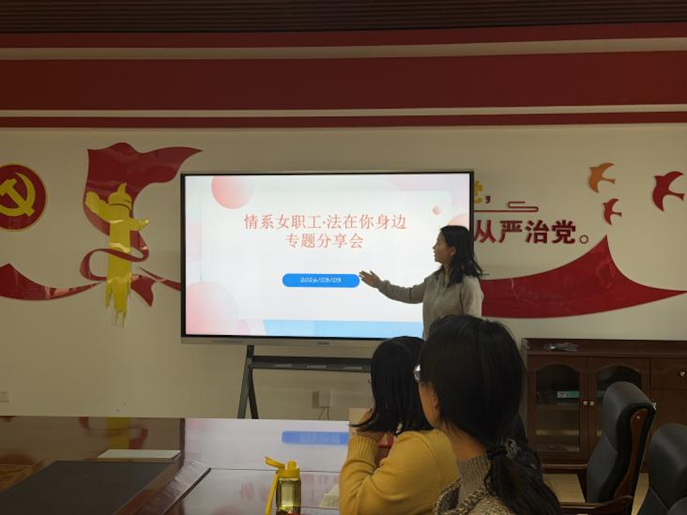 巾帼心向党,法治护芳华。在第116个“三八”国际妇女节来临之际,为全面贯彻党的二十届四中全会精神,深入学习贯彻习近平总书记关于妇女儿童和妇联工作的重要论述及在全球妇女峰会上的主旨讲话精神,切实提升学院女教职工的法治意识和依法维权能力,马克思主义学院紧扣学校工会活动要求,举办了“情系女职工 法在你身边”专题分享会。会议由学院党支部书记聂峰主持,全体教职工参加。