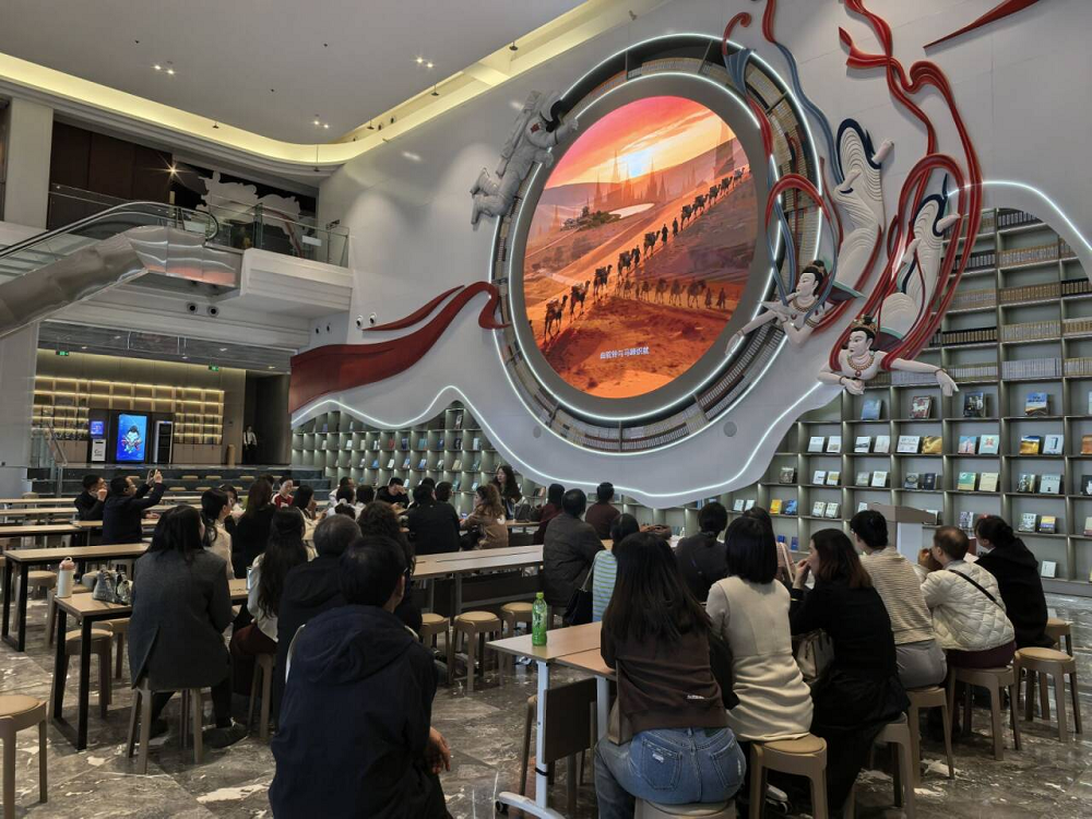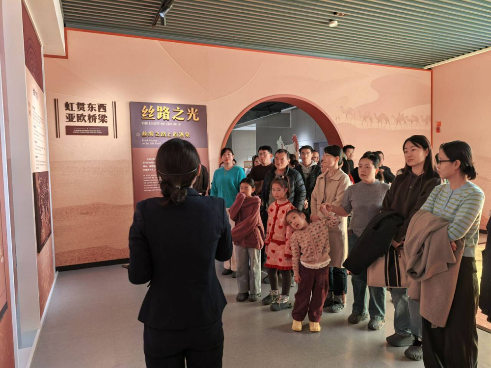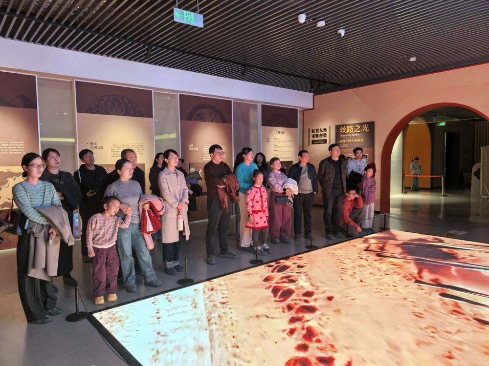 活动伊始,全体人员在讲解员的引导下走进一楼多功能厅,共同观看了沉浸式影片《丝路万象》。影片以光影为媒,通过数字人文展示技术串联起丝绸之路沿线的商贸往来、文化交融场景,古丝路驼铃与现代文明之声隔空呼应,让在场教职工直观感受了丝路文明的千年脉动与时代价值。