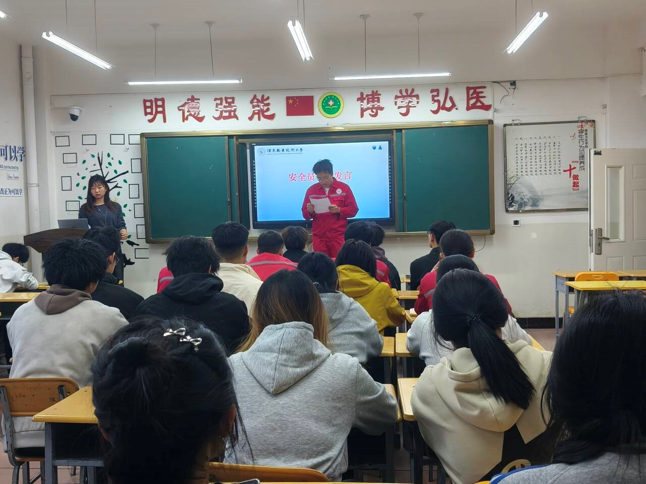 培训结束后,学院举行优秀实验室安全员颁奖仪式,对表现突出的优秀安全员予以表彰。随后,安全员代表上台发言,分享工作经验与心得,承诺将以更高标准履行职责,带头严守安全规范,带动全体同学共筑安全防线。