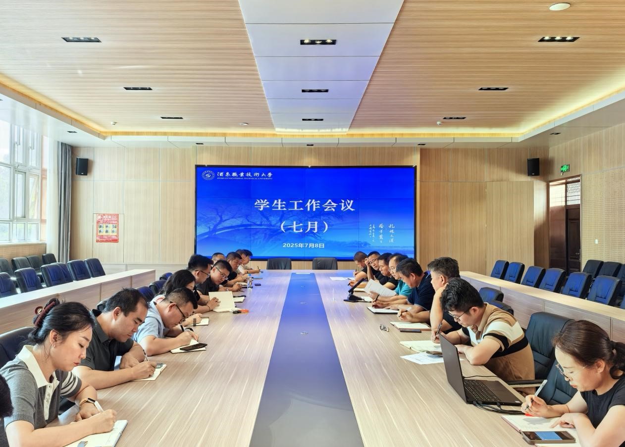 要闻快递 > 正文2025年7月8日下午,学校在弘毅楼C103会议室召开7月份学生工作会议。会议由学校党委委员、副校长施荣主持。学生工作部(处)、后勤管理处、应急安稳处、校产管理处、校团委、创新创业学院、心理健康与指导中心负责人,各二级学院分管学生工作领导参加会议。