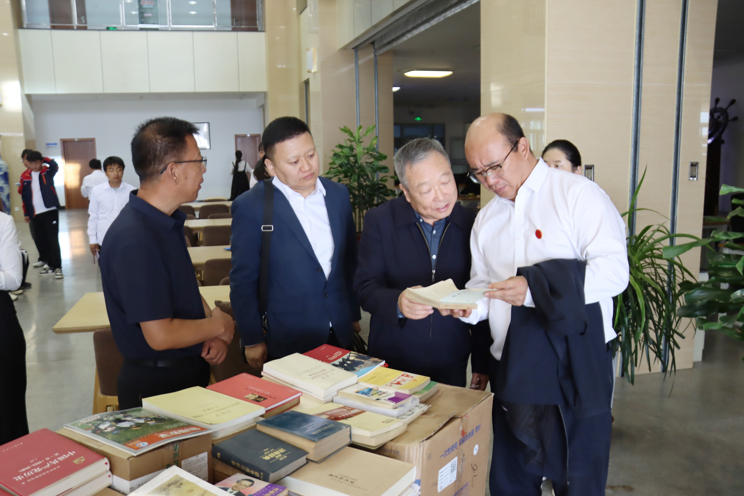 甘晖先生向我校捐赠4000余册图书,并向甘晖先生颁发捐赠证书。随后,开展了“书香传情 知行致远”环节,还参观了图书馆和校史馆。图书馆相关人员及 100 余名师生代表参加活动。(信息员:图书馆 崔晓燕)