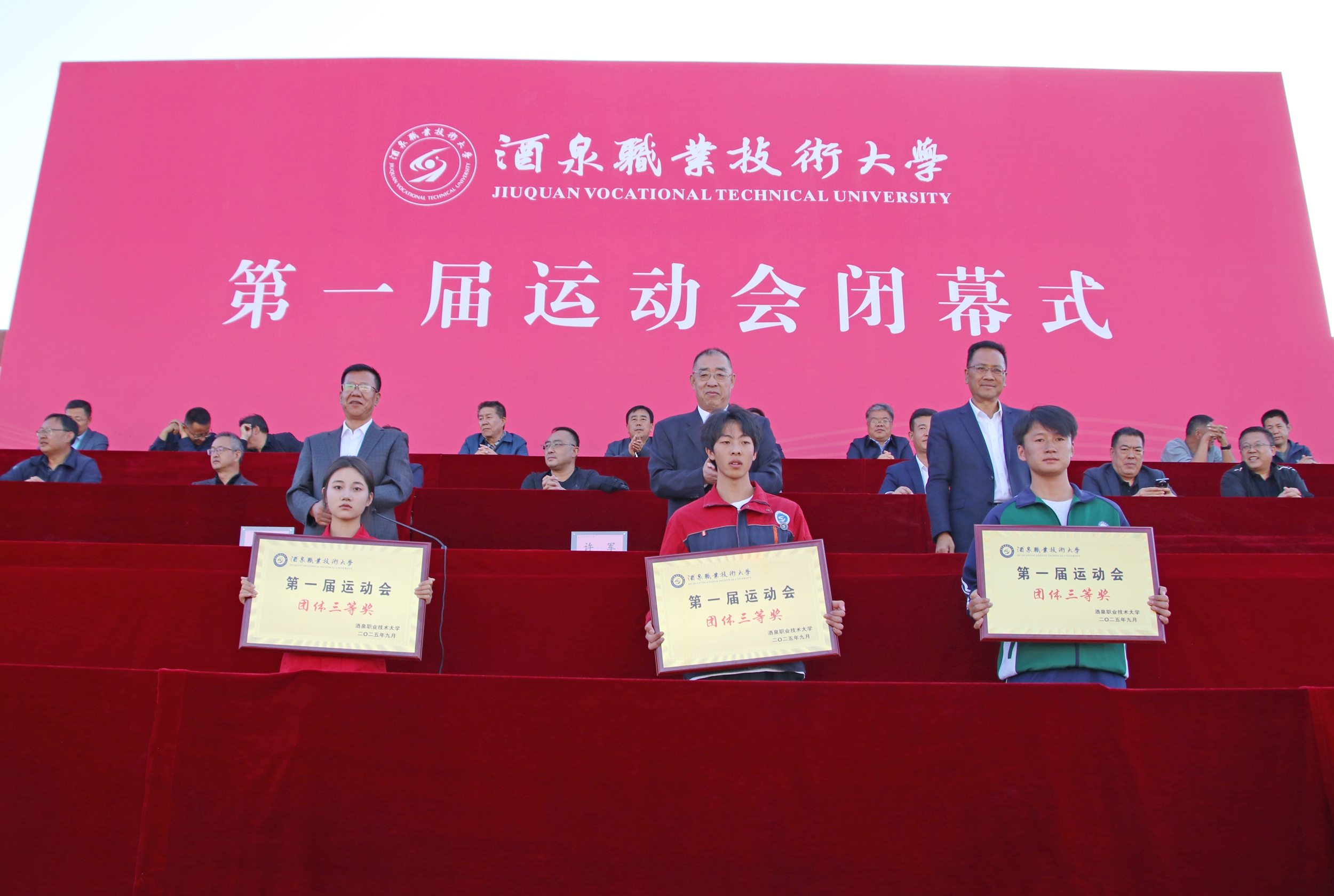 要闻快递 > 正文秋日赛场见证拼搏,奋进号角奏响华章。2025年9月29日,酒泉职业技术大学第一届运动会圆满闭幕。学校党委副书记、校长许军,党委委员、纪委书记、监察专员魏韡出席闭幕式。各学院师生代表、运动员、裁判员及志愿者齐聚现场,共同为这一盛会画上圆满句号。党委委员、副校长王金明主持活动。