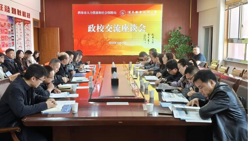 招聘活动同期,政校交流座谈会顺利召开。酒泉市人社局党组成员、人才中心主任魏秀峰在致辞中充分肯定了我校在人才培养和服务地方方面取得的成就。她表示,人社部门将一如既往地支持学校发展,共同建立常态化沟通机制,开展定向技能培训,拓宽招才引智渠道,为毕业生留酒就业创业提供更全面的政策保障和服务支持。