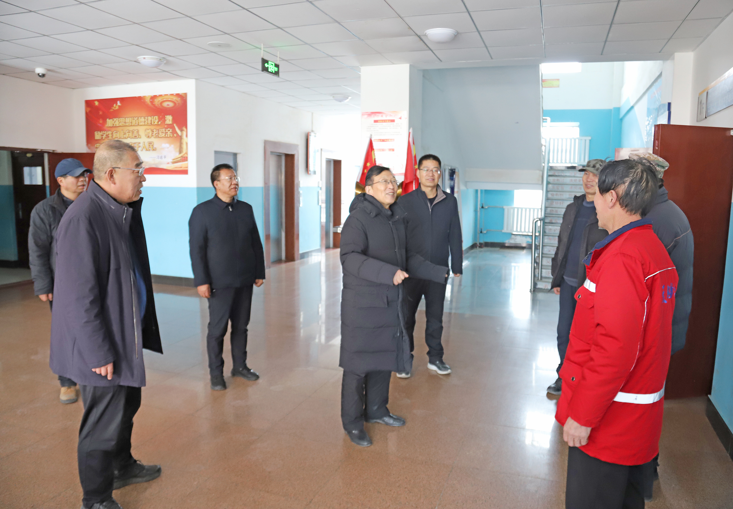 为切实筑牢假期校园安全防线,压实安全工作责任,确保校园安全稳定。2026年2月15日,学校党委书记易志军,党委副书记、校长许军,党委委员、副校长王金明深入学校重点区域开展安全检查,并亲切慰问坚守一线的值班人员,向他们送上学校的关怀与诚挚问候。办公室、学生工作部等相关职能部门人员陪同检查。