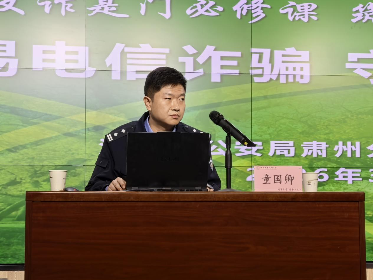 为深入贯彻落实省教育厅关于开展“法治教育开学第一课”的工作部署,结合学校2026年春季学期法治宣传教育主题班会安排,切实增强学生法治素养与防范电信网络诈骗能力。2026年3月12日晚,学校在弘毅楼C座101闻道厅举办“警惕电信诈骗·守护青春年华”安全教育专题讲座。讲座邀请酒泉市公安局肃州分局刑事侦查大队副大队长童国卿担任主讲。学校党委委员、副校长王金明主持活动。学生工作部负责人、各学院师生代表现场参加,全体在校学生8000余人通过线上直播方式同步收看学习。